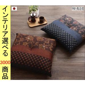 こたつ用座布団 55×59cm 綿 花柄 日本製 柿渋・濃藍色 YC8500044541