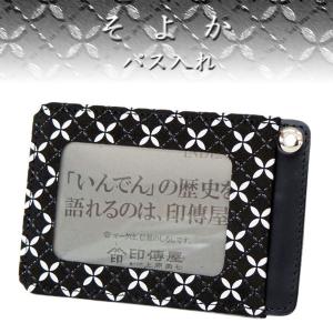 印傳屋 印伝 パス入れ 定期入れ そよか 8809 黒地鹿革 白更紗 黒漆 七宝繋ぎ柄 爆買