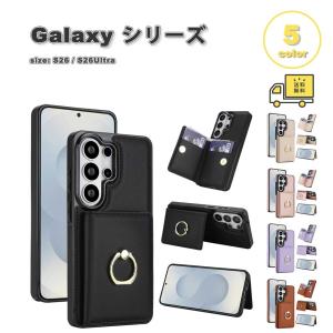 即納 ギャラクシー ケース 背面 カード収納 PUレザー リング付き スタンド機能 カバー 全5色 Galaxy S26/S26Ultra 耐衝撃 軽量 送料無料