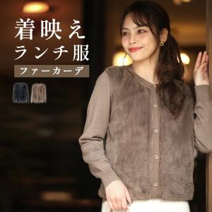 カーディガン カーデ トップス 羽織り ファー 前開き 丸首 長袖 ニット ニットカーディガン ブラック モカ