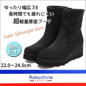 ゆったり幅広 3E 足長美脚 厚底 ウェッジソール 撥水 ストレッチブーツ 黒 コンフォートシューズ ウエッジソール ウェーブソール htc5100 送料無料