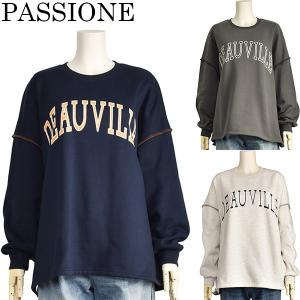 パシオーネ 裏起毛 ロゴ トレーナー レディース ゆったり 杢アイボリー ネイビー グレー 40代 50代