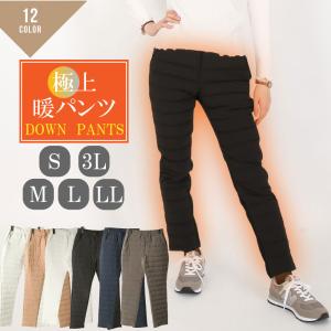 ダウンパンツ 防災 避難所 裏起毛 パンツ ボトムス レディース ミセス ダウン 暖かい 防寒 ウエストゴム ゆったり M L LL