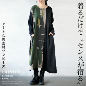ロングワンピース 着るだけで“センスが宿る”アートワンピ カーキ ブラック 長袖 七分袖 ゆったり 大きめ 体型カバーOTONA 40代 50代 60代
