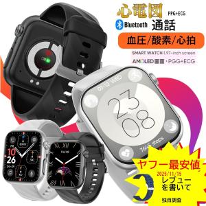 スマートウォッチ 心電図 血圧 心拍 通話機能 他社14980円 着信通知 血中酸素 血液組成分析 体組成分析 体温 音楽・カメラ制御 SOS機能