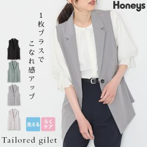 トップス ジレ ベスト レディース 黒 羽織り ウォッシャブル イージーケア オフィス 通勤 きれいめ Honeys ハニーズ テーラードジレ