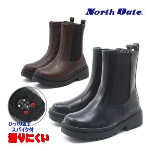 ノースデイト レディース ミドル丈 サイドゴアブーツ ブラック ダークブラウン 反転式 スパイク 防寒 防滑 撥水 冬用 North Date KH7201 ダテハキ