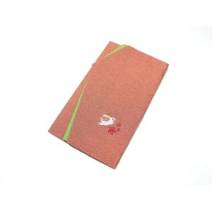 刺繍金封ふくさ「ピンク色の地にウサギの刺繍」