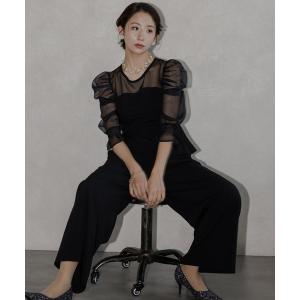 パンツドレス チェックチュールパフスリーブパンツドレス