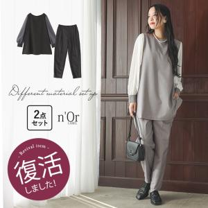 【送料無料】セットアップ ブラウス パンツ レディース トップス 長袖 ボートネック 配色 ボトムス テーパード オケージョン【メール便不可】【20】