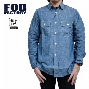 長袖シャツ シャンブレー ワークシャツ 綿 コットン f3494 FOB FACTORY F.O.Bファクトリー 日本製 岡山 ミリタリー アメカジ ブルー 巻き縫い カラカン