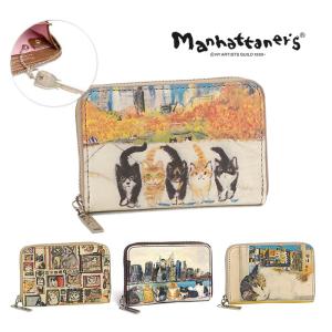 マンハッタナーズ 牛革プリント トップパース キー コイン カードケース レディース 本革 猫 075-1521 60サイズ 1年保証 プレケア特典
