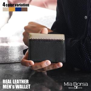 牛革 コンパクト 折り 財布 両 カード入れ バイカラー ステッチ デザイン 軽量 キャッシュレス 敬老の日 [ネコポスで送料無料]