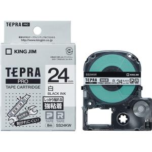 キングジム テプラPROテープ強粘着SS24KW 白/黒字 24mm SS24KW