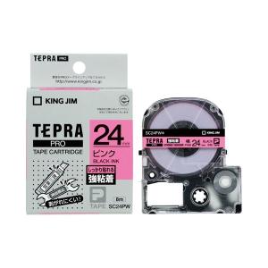 (まとめ)キングジム テプラPROテープ強粘着 ピン/黒字 SC24PW〔×5セット〕