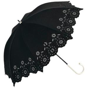 ビコーズ カットワークレース ブラック 黒 クロ系 傘 レディース 長傘 雨傘 日傘 UVカット 遮光 晴雨兼用 大きい 丈夫 手開きタイプ
