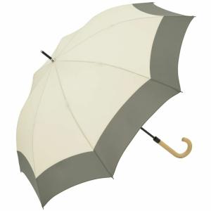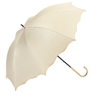 ビコーズ PUウェーブメロウ グレージュ 灰色 グレー系 傘 レディース 長傘 雨傘 日傘 UVカット 遮光 晴雨兼用 大きい 丈夫 手開きタイプ
