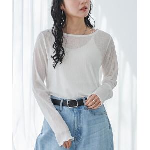 tシャツ メタリックロゴプリントロングスリーブTシャツ レディース