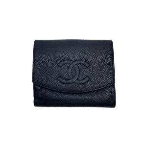 CHANEL◆2ツ折サイフ_ラムスキン_Wホック_ココマーク_BLK/羊革/BLK/無地/レディース