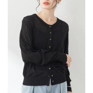 カーディガン 接触冷感シアークルーニットカーディガン レディース