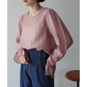 ブラウス シャツ シアーチェックスリーブプルオーバー レディース