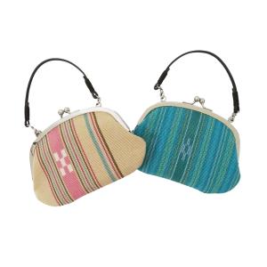 夏花 シーグリーン 革ヒモ付き親子がま口財布 [MINSAH]【ネコポス便可】