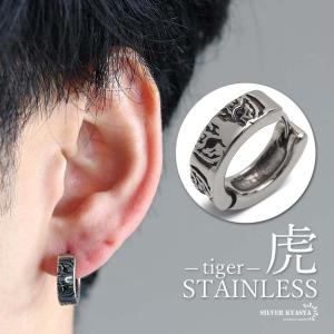 ステンレス タイガーピアス 虎ピアス アニマルピアス フープピアス シルバー 個性的 片耳 メンズ 男性 金アレ対応 爆買