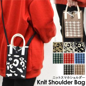 スマホショルダー スマホ ポーチ スマホポシェット ニットバッグ アニマル柄 千鳥柄 ミニショルダー ヒョウ柄 レオパード マチあり 大容量 2way レディース