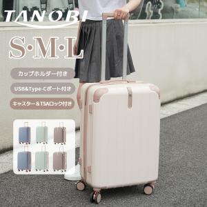 スーツケース Sサイズ USBポート キャリーバッグ キャリーケース ストッパー付き カップホルダー TSAロック 2日 3日 小型 おしゃれ 軽量 TANOBI かわいい