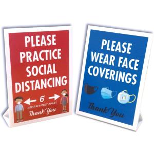 【並行輸入品】マスク着用&ソーシャルディスタンシング(身体的距離の確保のお願い) カウンター用 サイン コンボパック 30x22x7.