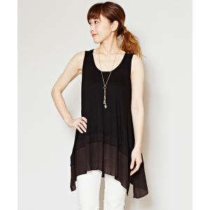 タンクトップ ノースリーブ 「UVカット」チュール使いタンクトップ レディース