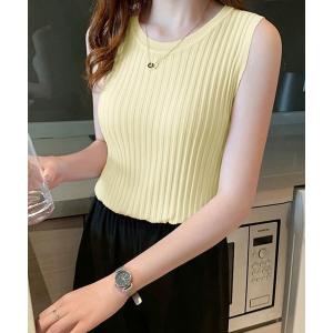 タンクトップ ノースリーブ リブニットタンクトップ レディース