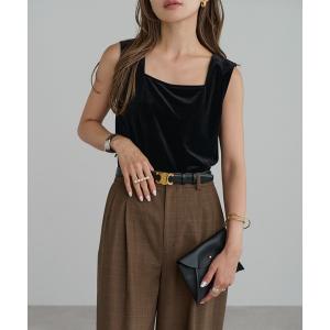 タンクトップ ノースリーブ 前後2WAYスクエアネックベロアタンクトップ レディース