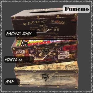 [Fumemo] ティッシュ ペーパー ボックス カバー ケース アンティーク レトロ ヴィンテージ 風 アメリカン 雑貨 木製