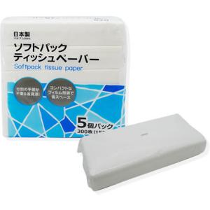ティッシュペーパー ソフトパックティッシュ 300枚(150組) 5個 x 1パック