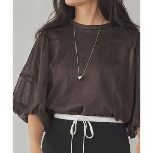 ティティベイト titivate パフスリーブチュールレイヤードトップス (ダークブラウン)