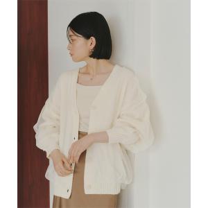 カーディガン 袖チュールVネックニットカーディガン レディース