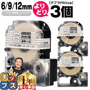 テプラPRO用互換 キングジム対応 自由選択 3個 マット透明/白文字 6mm/9mm/12mm(テープ幅) 互換テープ SB6TS SB9TS SB12TS