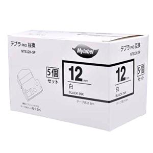 Mylabel キングジム テプラ テープ 12mm 5個セット SS12K 互換テープカートリッジ テプラPRO NTS12K-5P 白地黒文