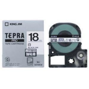 キングジム SS18KW テプラPROテープ 強粘着ラベル 白 黒文字 18mm幅 8m