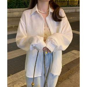 ブラウス シャツ シャツジャケット シワ加工 カラーシアーシャツ ロング 長袖 レディース