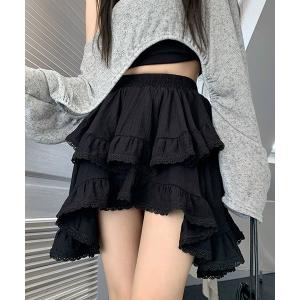スカート ハイウエスト フリル ティアード ミニ スカート ヘムスカート