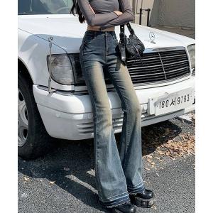 ジーンズ デニム デニムパンツ フレアデニムパンツ ブーツカット ハイウエスト 刺繍 ダメージ ハイウエスト ジーンス レディース