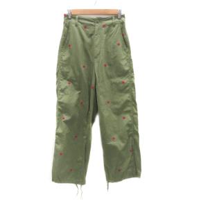 ニコアンド Niko and.. ミリタリーパンツ ストレートパンツ アンクル丈 刺繍 星柄 M カーキ マゼンタ /HO12 レディース