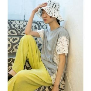 tシャツ サイドレースドルマンプルオーバー レディース