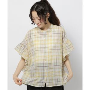 ブラウス シャツ 袖フリルチェックブラウス レディース