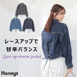 アウター ジャケット Gジャン コットン 綿 レースアップ デニム 綿100% ショート丈 BCIコットン レディース Honeys ハニーズ レースアップGジャン