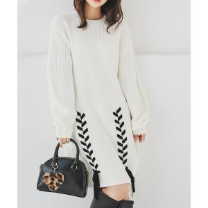 ワンピース レースアップニットワンピ
