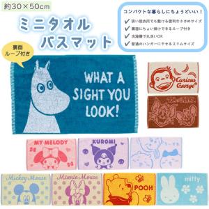 ミニタオルバスマット 30×50cm マット タオル地 足ふきマット バスマット コンパクト スリム 小さめ キャラクター お風呂