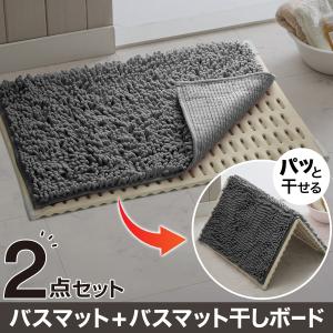 【2点セット】しっかり吸水バスマット(45x60cm グレー YM002)+サラサラ バスマット干しボード ニトリ
